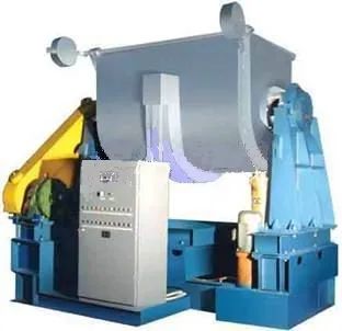 混捏鍋是由一對互相配合和旋轉(zhuǎn)的葉片(通常呈Z形)所產(chǎn)生強(qiáng)烈剪切作用而使半干狀態(tài)的碳素和瀝青等物料進(jìn)行均勻的攪拌混合設(shè)備。